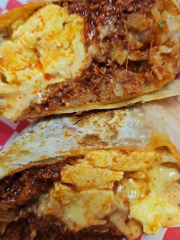 Eggs, Chorizo, Hashbrowns, and our signature cheese sauce.